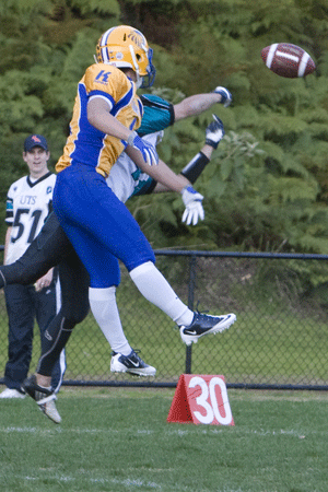 The Lions defence was warming to its work, sending the Gators three and out on their next possession and pressuring the punter into a hurried short kick.  The defensive line of Piotr Milewski, Fady Aoun and Chady Aoun were winning the battle at the line of scrimmage while linebackers Greg Wernecke, Joe Lim and Chris Noble were harassing the Gators’ backfield with good pressure.  Noble would finish with 4 sacks and 4 tackles for loss, Lim with 2 sacks and 3 tackles for loss and Wernecke with 5 tackles for loss in a big day out for the backers.